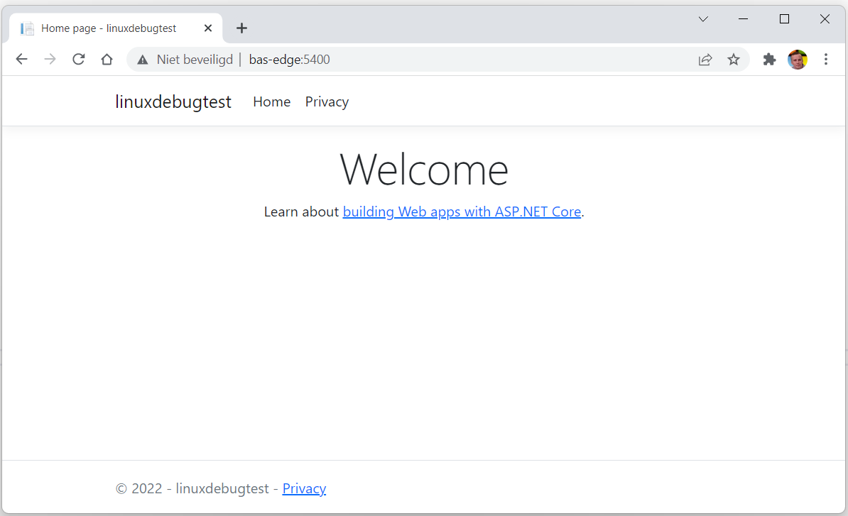 Before starting actual development I created an out-of-the-box ASP.NET Core Web app, and published it as a Linux-X64 package on my Ubuntu image and started the application on the linux machine.